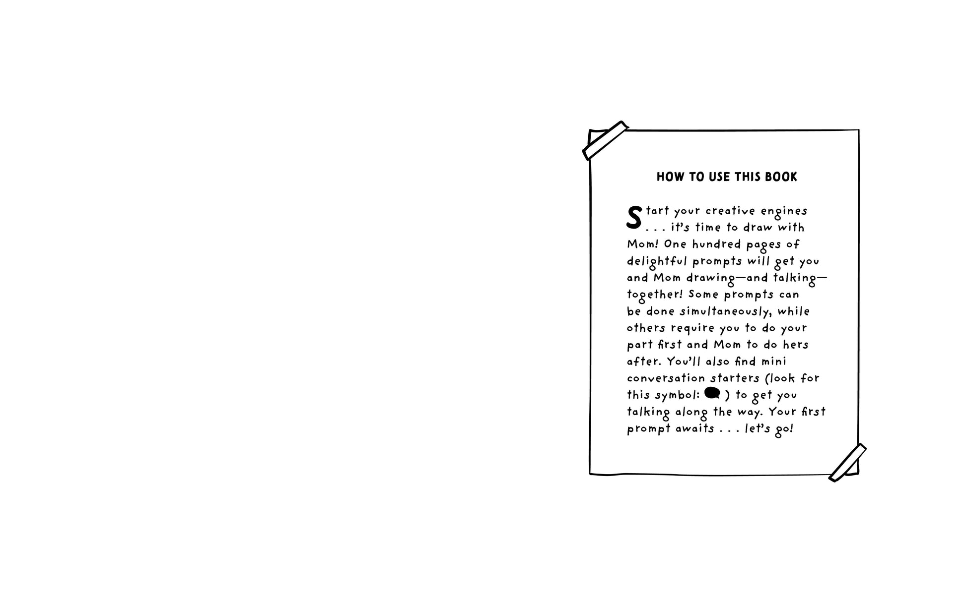 What's the one thing better than drawing? Drawing with MOM! In this unique parent-child doodle book, moms and their kids create joint works of art by following over 100 creative prompts that get them both working on the same drawing. Co-create a castle, a cake, or the perfect petting zoo as you talk, laugh—and most importantly, bond—during hours of drawing, doodling fun!