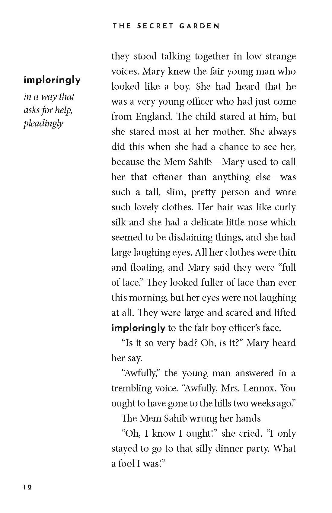 In The Secret Garden: The Read-With-Me Edition, the unabridged text of the beloved story of the garden, the key, and the robin is broken down into easy, twenty-minute chunks—perfect for daily read-alouds. Thoughtful questions after each passage boost comprehension and facilitate meaningful discussion, while definitions in the margins make it easy for parents to explain what challenging words might mean. Learn vocabulary, strengthen literacy, introduce the classics, and bond over beautiful literature in just 20 minutes a day!