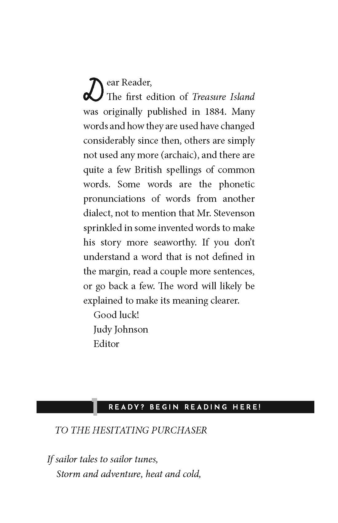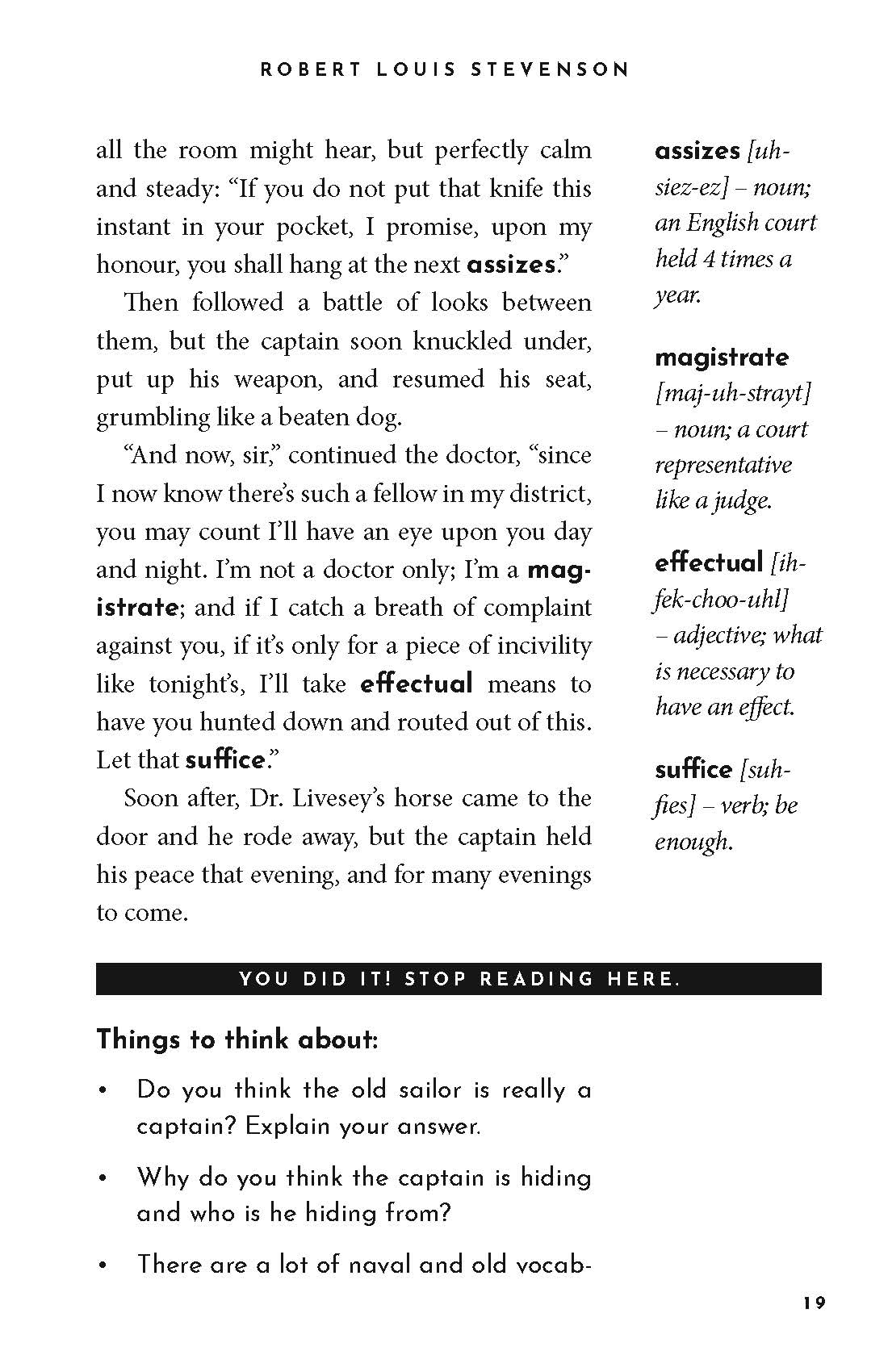 In Treasure Island: The Read-With-Me Edition, the unabridged text of the exciting story of Jim Hawkins, the pirates, and Long John Silver is broken down into easy, twenty-minute chunks—perfect for daily read-alouds. Thoughtful questions after each passage boost comprehension and facilitate meaningful discussion, while definitions in the margins make it easy for parents to explain what challenging words might mean. Learn vocabulary, strengthen literacy, introduce the classics, and bond over beautiful literature in just 20 minutes a day!